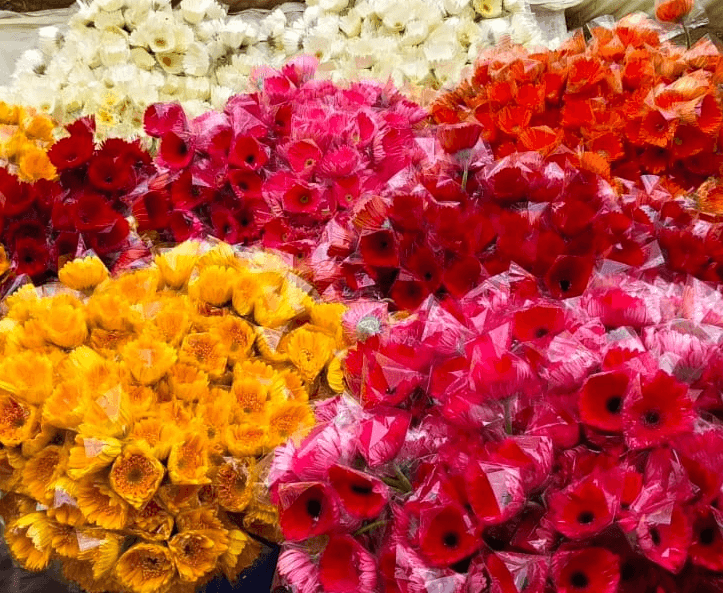 Roses: 10–14 days | Gerberas: 10–12 days | Carnations: 18–21 days | Marigolds: 7–10 days (when properly handled).